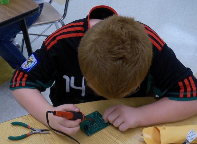 Students in the new electronics club at Edward Bains School for the Language and Arts in Kenosha, WI led by teacher and school principal, Nathan McCray K9CPO built 24-hour clocks and learned the importance of each of the electronic components in the circuit. Construction of the kits included learning the skill of soldering.